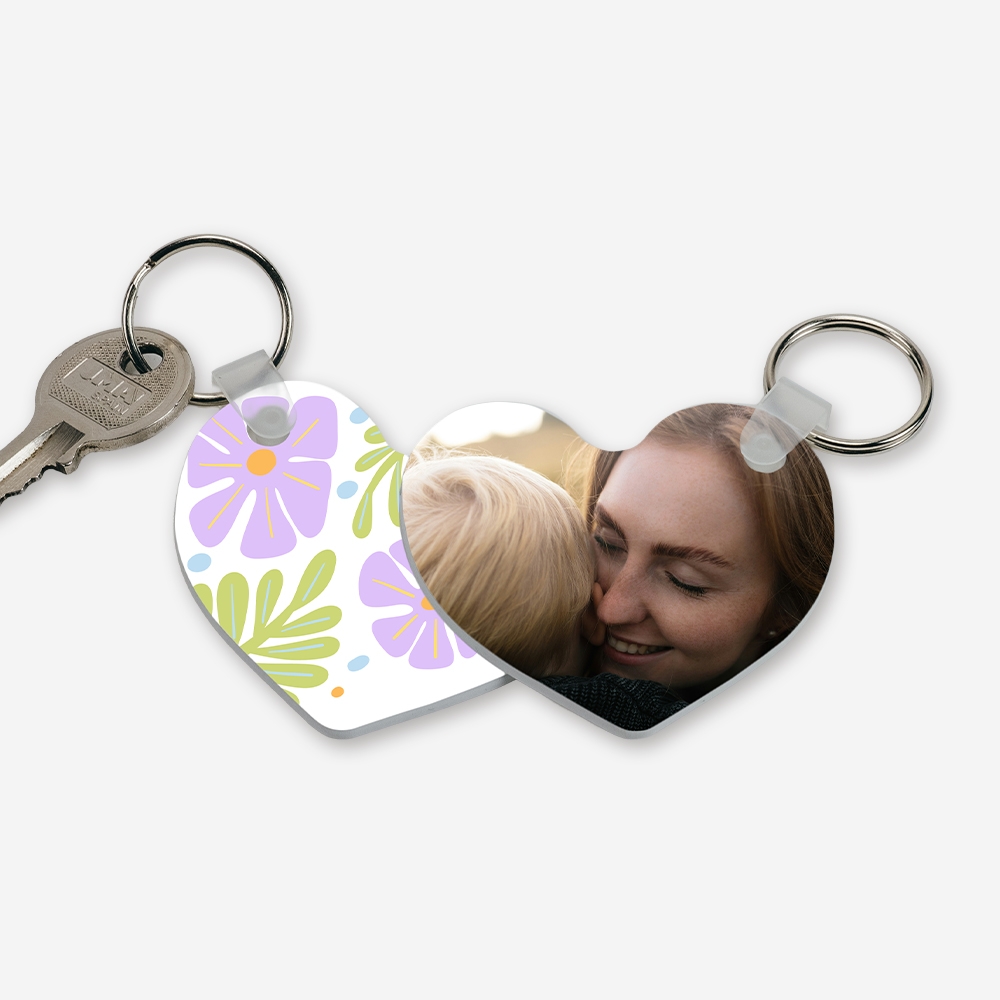 Um coração cheio de estilo para as tuas chaves nunca mais se perderem no fundo da mala. O contraste entre o lilás e os centros em laranja vibrante dá-lhe aquele toque fresco e moderno que combina com qualquer rotina. É o pequeno detalhe que faltava para levares a tua foto favorita sempre à mão.